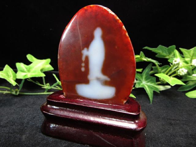 完全限定入荷 入荷頻度極少 赤瑪瑙原石スライス 観音紅天珠プレート置物 石サイズ縦約86.5mm×横幅約74mm 重さ約52g 1個売り チベット発祥の厄除け・開運護符 三十三利益・安心立命・開運守護 専用木製台座付き