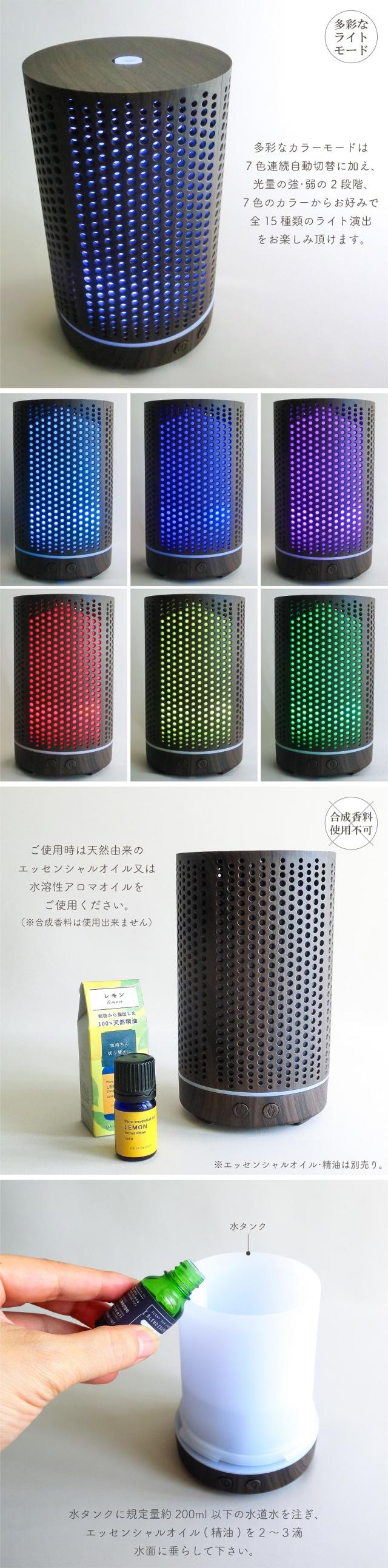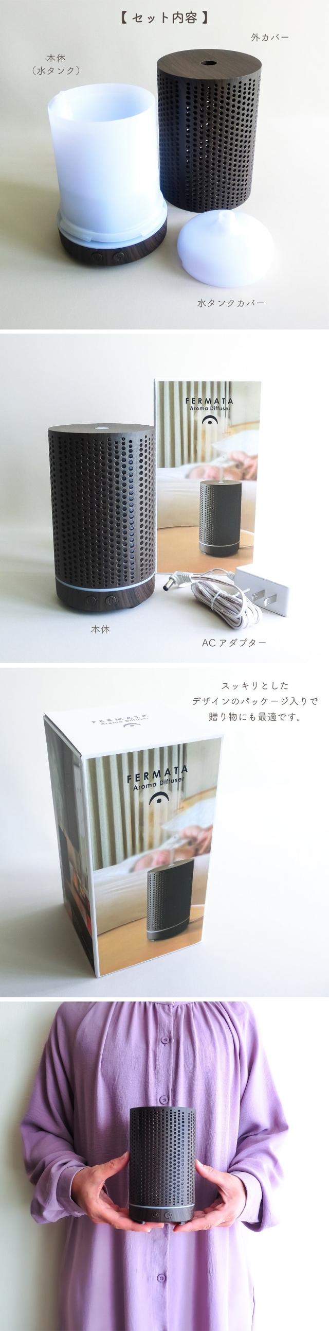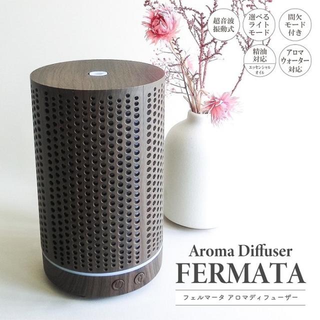 アロマ フェルマータ アロマディフューザー ウッドグレイン ダークブラウン 超音波振動方式 ウッド調 加湿器 間欠モード タイマー機能 7色LEDライトモード 卓上 間接照明 イルミネーション ギフト 贈り物 モダン インテリア