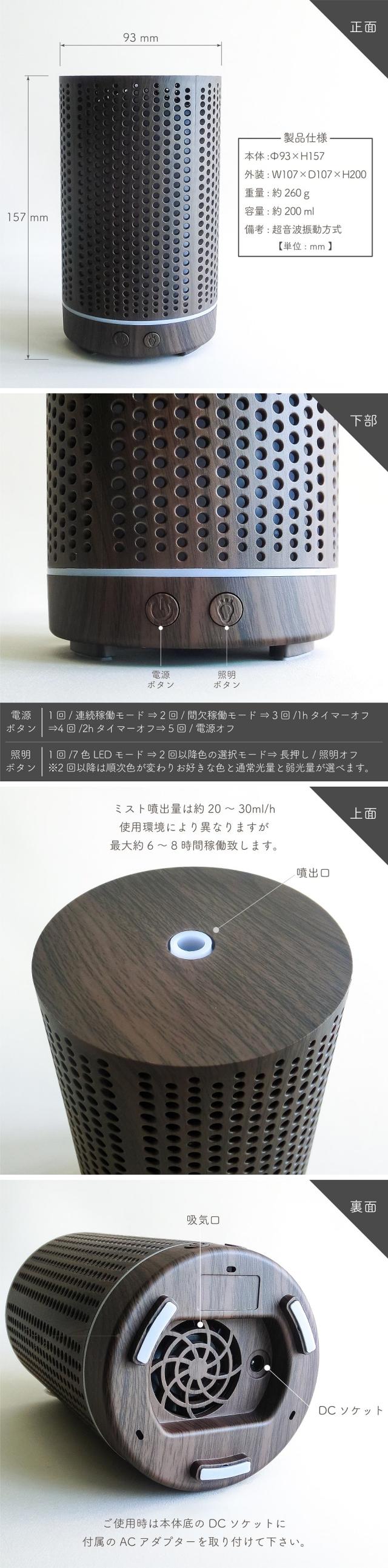 ●本製品は超音波加湿器の原理を応用したアロマディフューザー(芳香拡散器)です。本格的な加湿器のような加湿能力はありませんのでご了承ください。