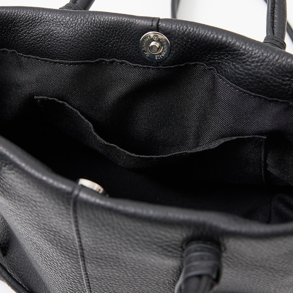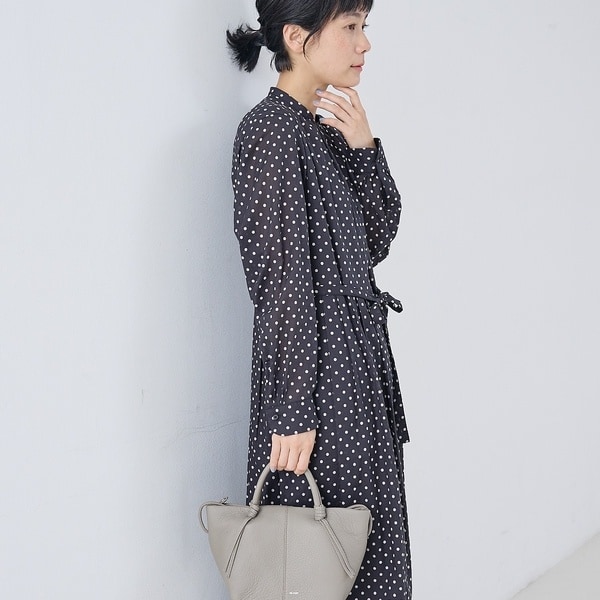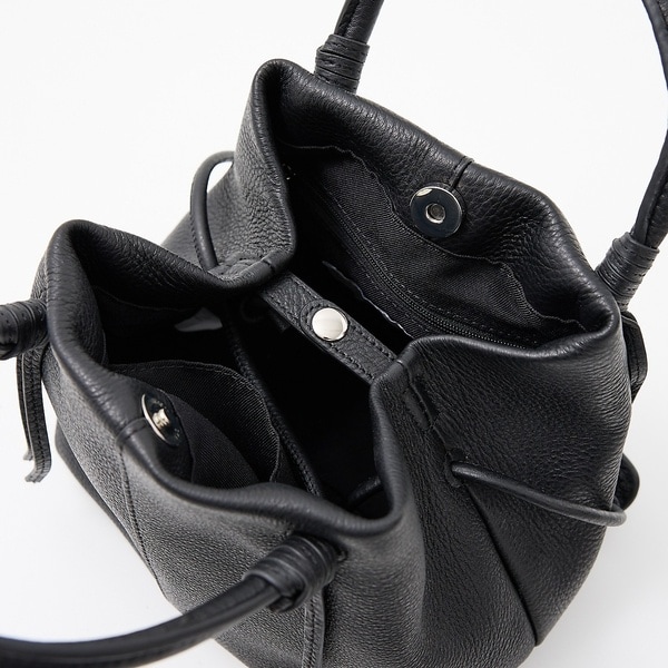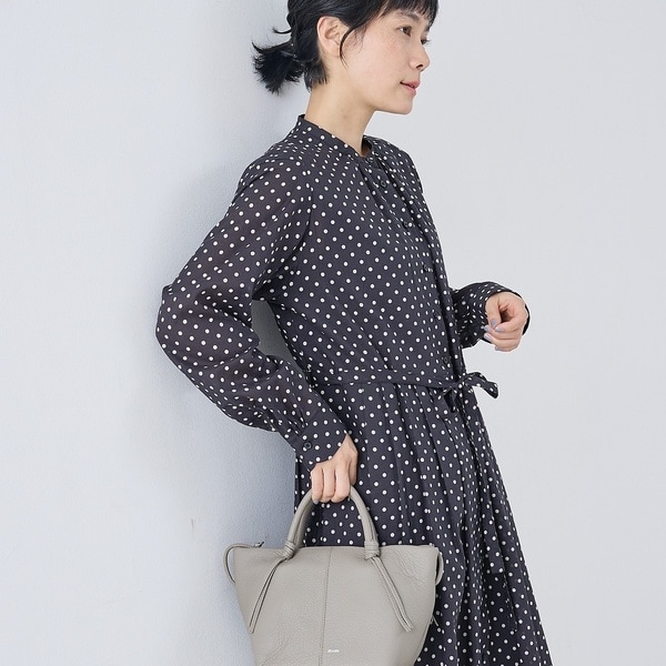 サイドを織り込んでスナップボタンで留めるとシルエットが変化し、コーディネートに合わせて持ち方をアレンジできるところもポイント◎