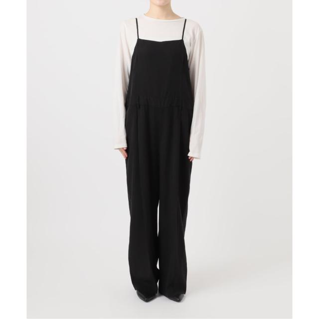 メンズのタックトラウザーに、相反するフェミニンなキャミをドッキングした感覚のドレスサロペットです。セルロース系のサテン組織の素材を使用した程よい肉感があり、製品染め&製品洗いをしているので小粋な表情な仕上がりになっています。