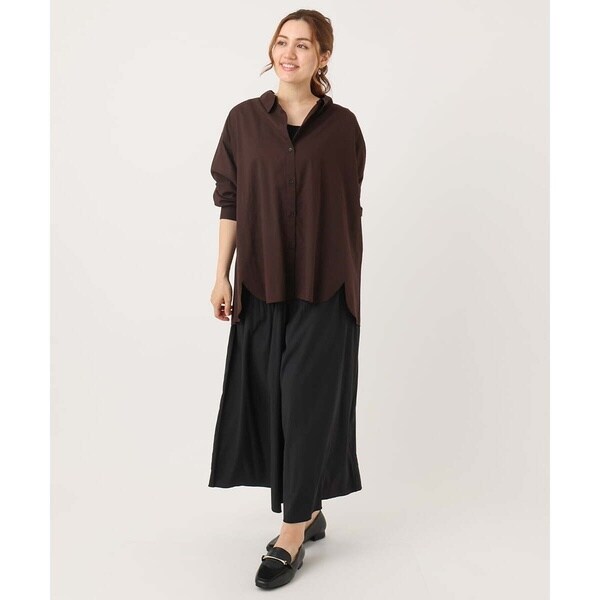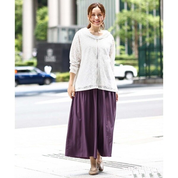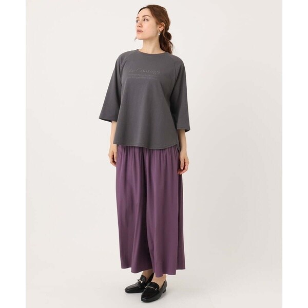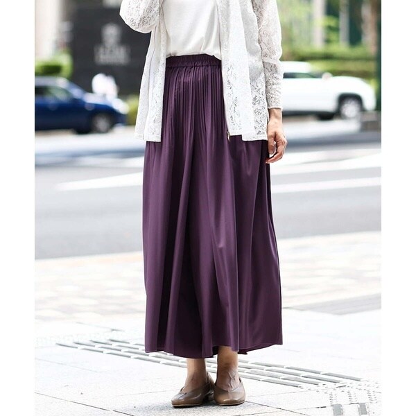 落ち感がきれいなスカート見えするデシンプリーツパンツ。
