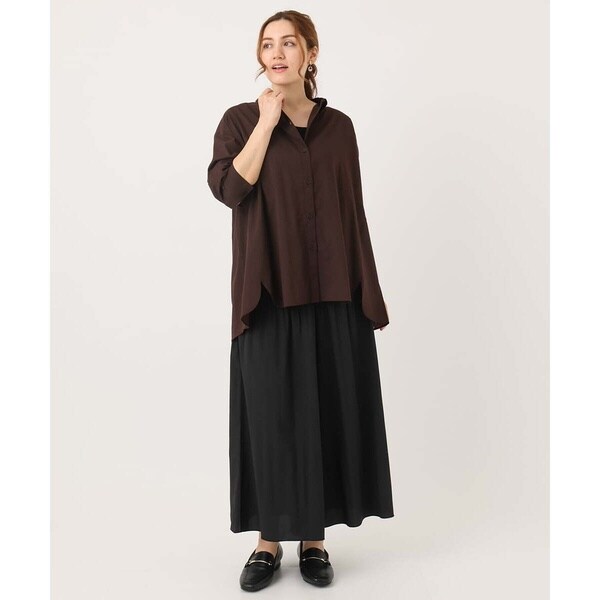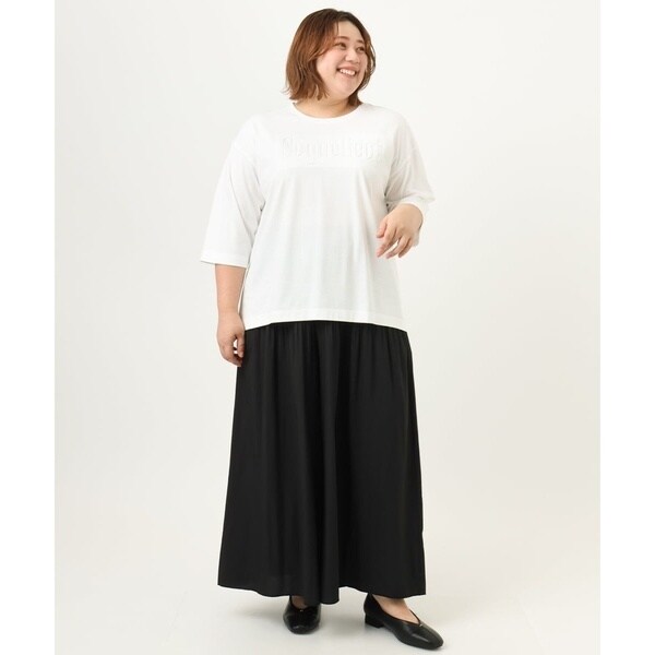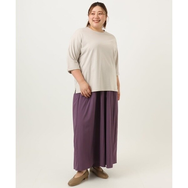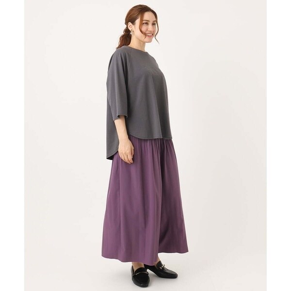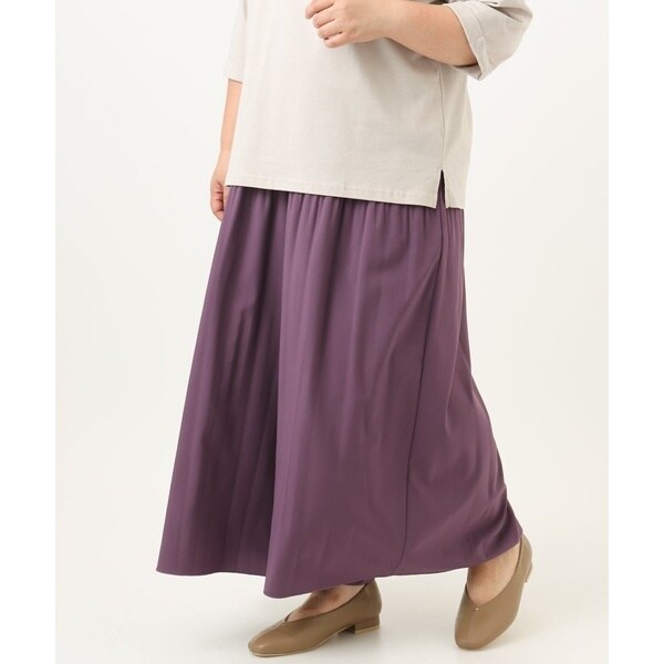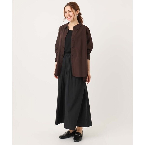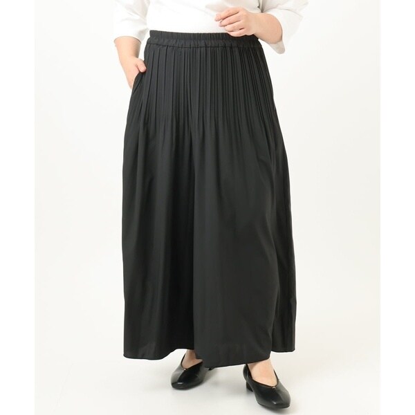 腰回りにプリーツをかけ自然と裾に向けて消しているので広がらず、すっきりキレイなシルエットに。