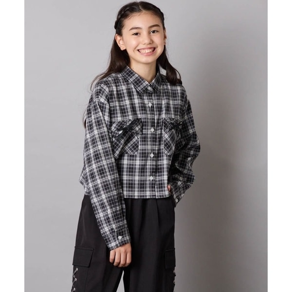 アー・ヴェ・ヴェ(a.v.v)/[130−160]クロップドチェックリボンシャツ