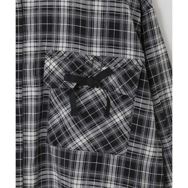 ・胸ポケットにトレンドディテールのギャザーとリボンをプラスしたデザインがトレンドライク。