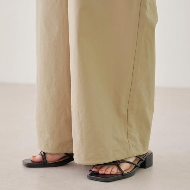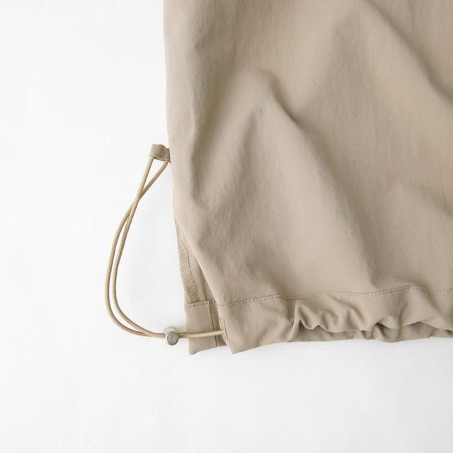裾のスピンドルを絞れば、トレンド感のあるパラシュートパンツ風のバルーンシルエットにアレンジ可能。