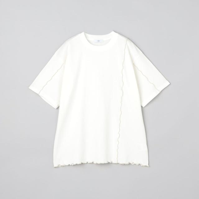 配色のメローがアシンメトリーに施された、シンプルながらも存在感のあるデザインTシャツ。