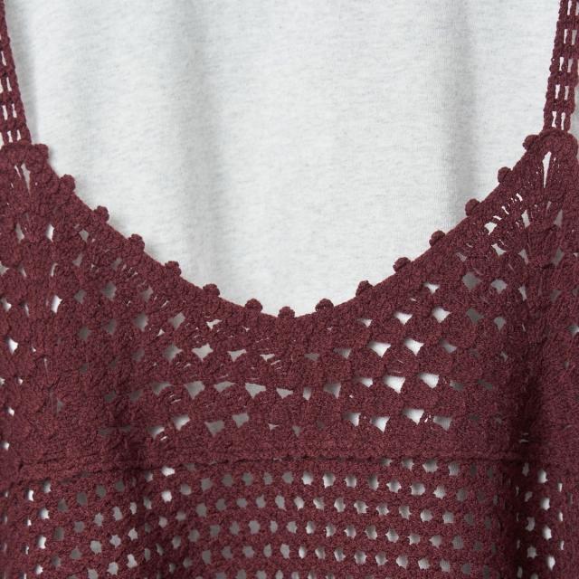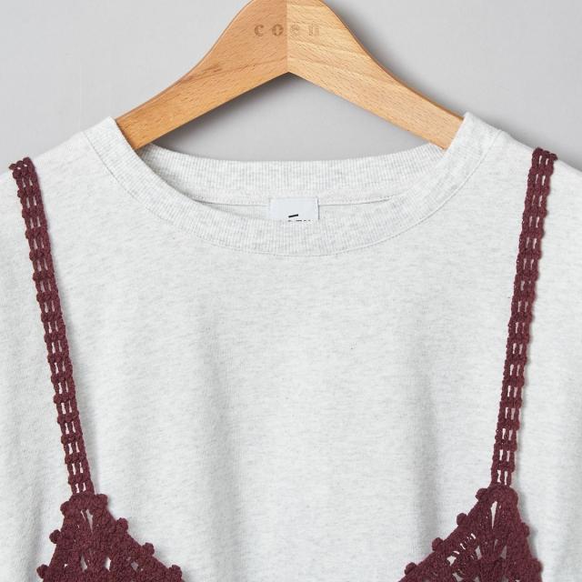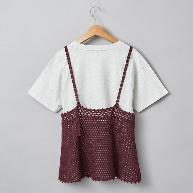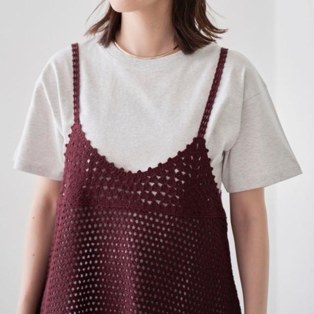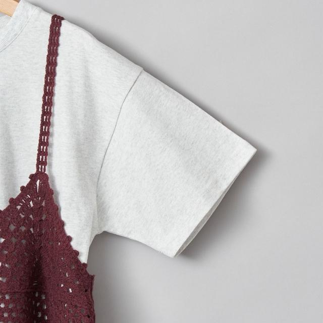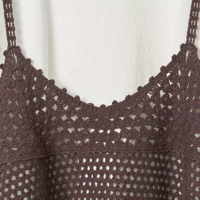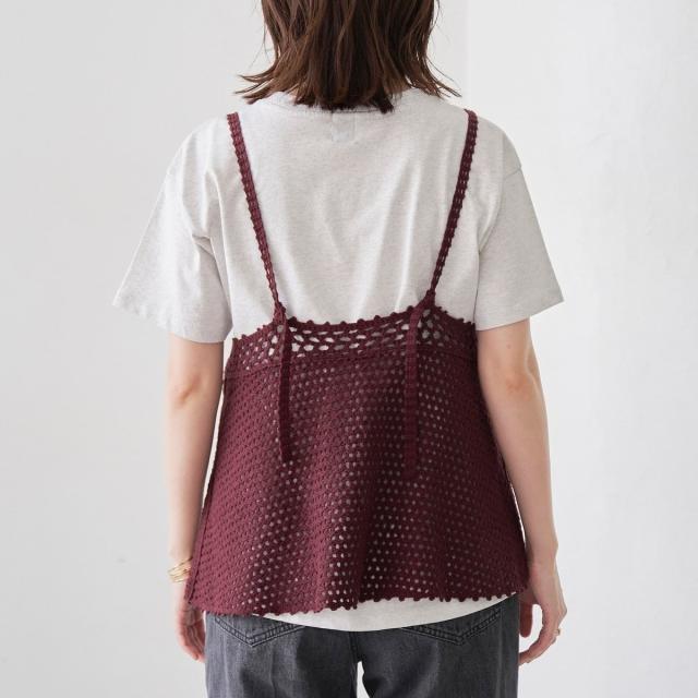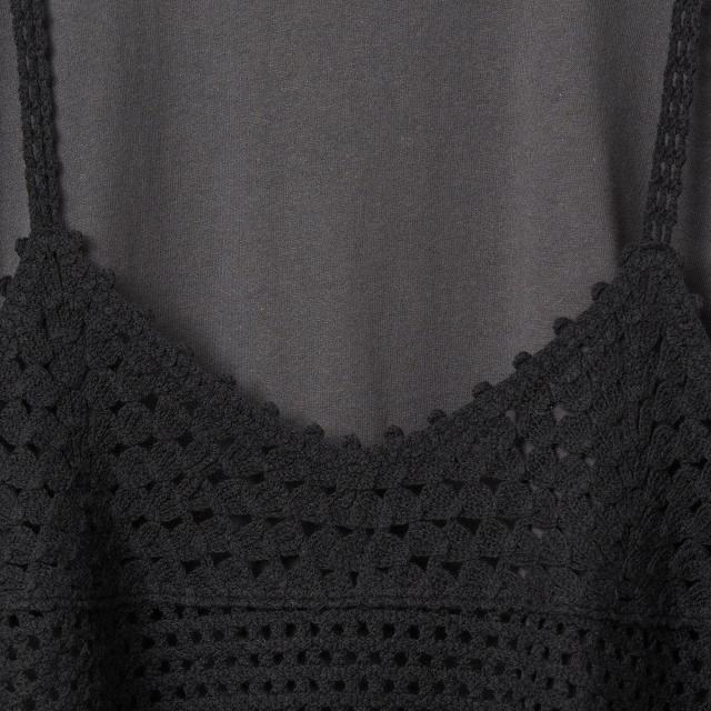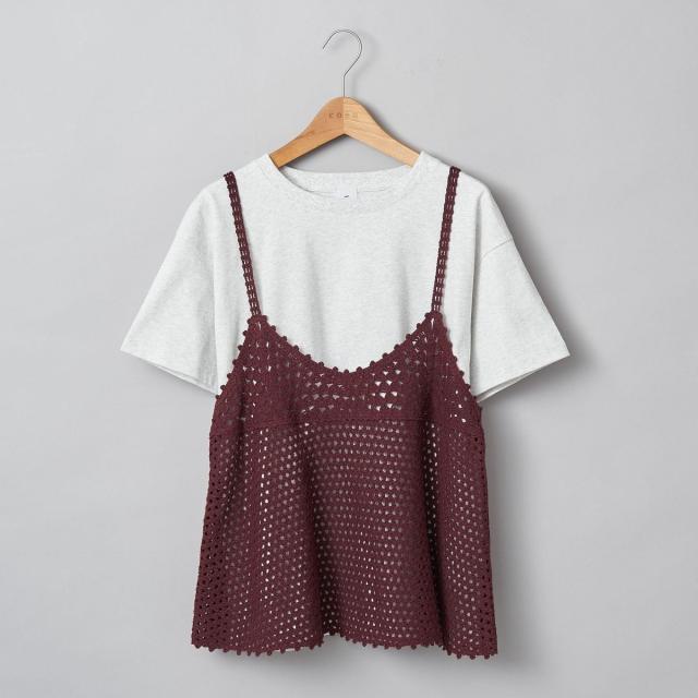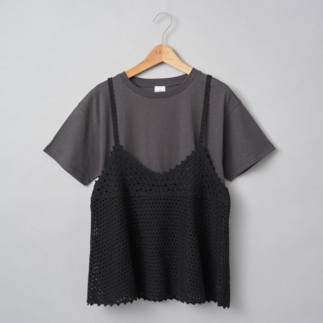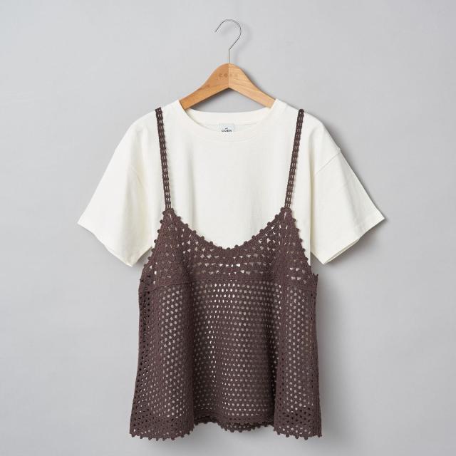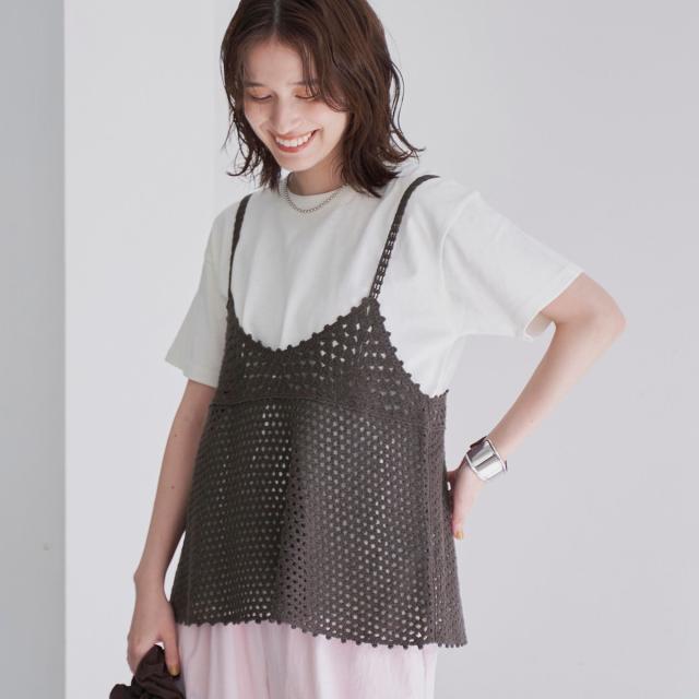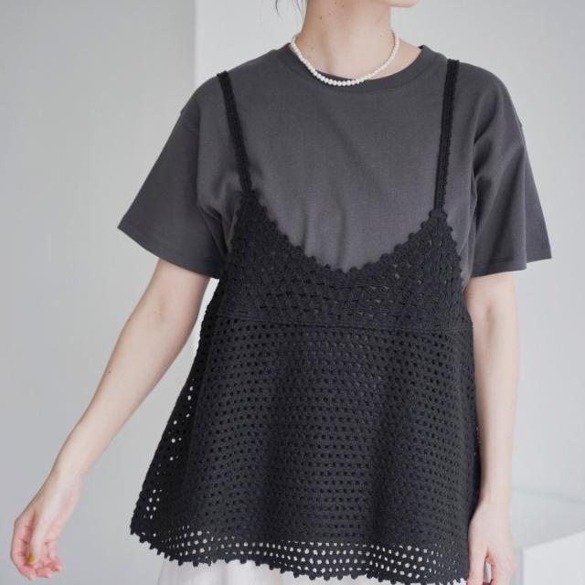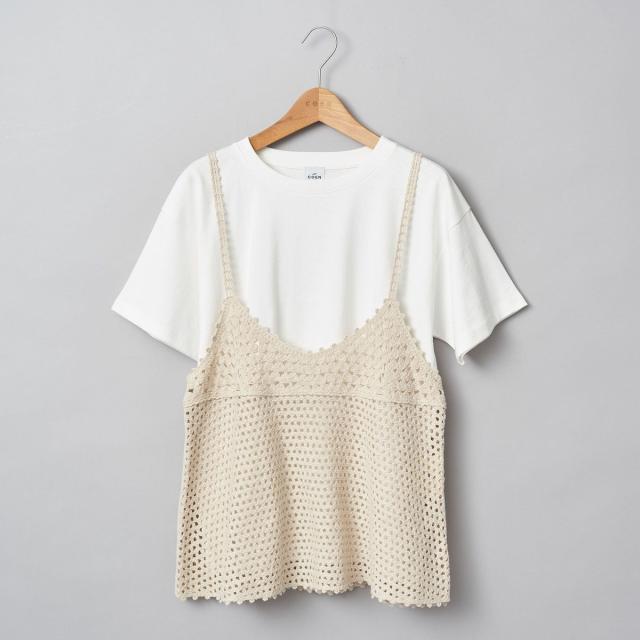 クロシェ編みのキャミソールとTシャツがセットになった、着こなしの幅が広がる嬉しいアイテム。