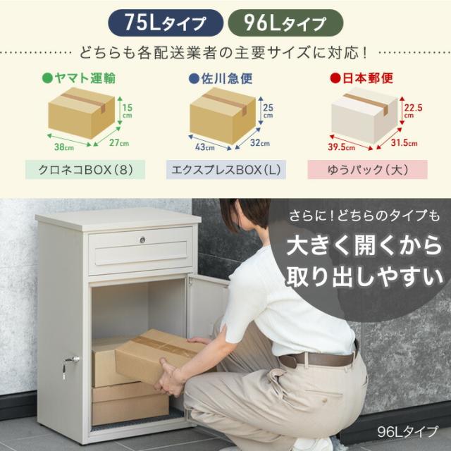 【正午〜P5%還元】 《完成品でお届け》 ポスト一体型 宅配ボックス 鍵付き 大容量 96L 宅配box 配達ボックス メールボックス 郵便 郵便ポスト 置き型 ポスト 一体型 置き配 防水 マグネット 屋外 一戸建て用 大型 使いやすい 簡単 組み立て不要