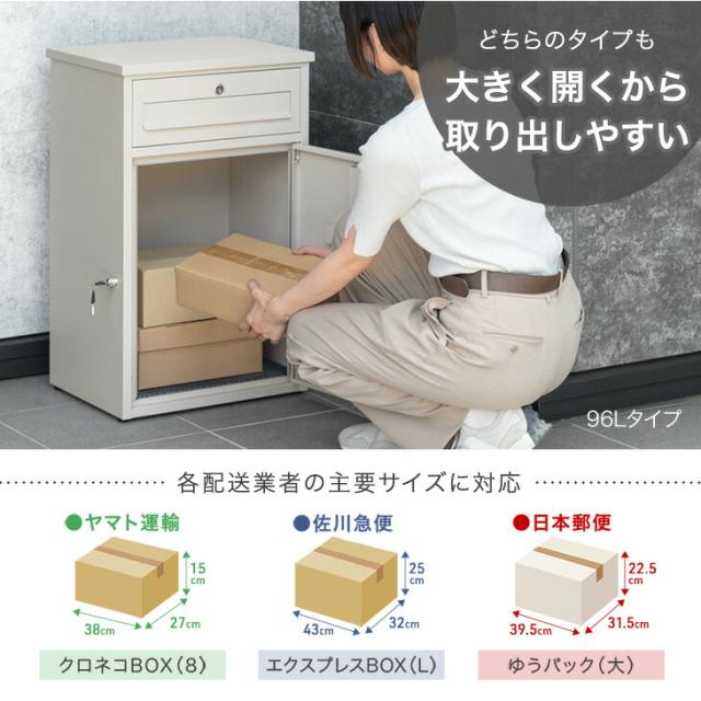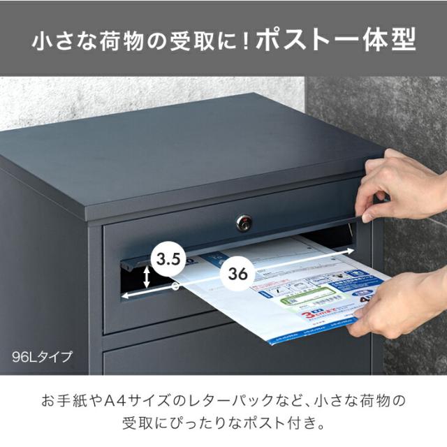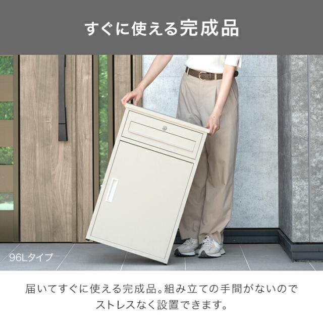 【本日P5%還元】 《完成品でお届け》 ポスト一体型 宅配ボックス 鍵付き 大容量 96L 宅配box 配達ボックス メールボックス 郵便 郵便ポスト 置き型 ポスト 一体型 置き配 防水 マグネット 屋外 一戸建て用 大型 使いやすい 簡単 組み立て不要