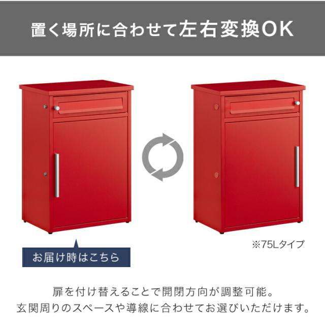 - 組み立て不要で助かりました。ただ、我が家の設置場所の関係で扉の開き方を逆にしました。その場合の手順の説明が非常に分かりやすく、感激しました。 カラーの選択が2種類でしたが、もっとバリエーションがあるといいなと思いました。 また、ポスト部分の横長の扉が内側に倒れるものではなく、外側に引き上げるタイプのため、片手で扱えない点がちょっと難かなと思いました。新聞屋さんにはポストを利用せず上に置いてもらっています。 また、ポストの鍵を開いている状態にするには鍵を付けたままにしなくてはならない仕様も少々使いにくく感じています。
