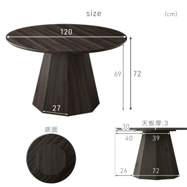 円形 120 ダイニングテーブル 単品 4人掛け ダイニング テーブル ラウンドテーブル 丸テーブル 円形テーブル 食卓 丸 丸形 円 幅120 4人 4人用 1本脚 木製 ブラック モダン 北欧 おしゃれ 【超大型】【後払/時間指定NG】