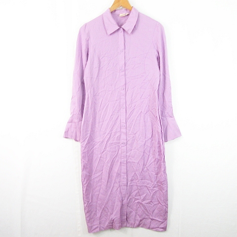 【中古】ユニクロ UNIQLO HANA TAJIMA ロングシャツワンピース 長袖 インナー付き レーヨン S パープル kz12448