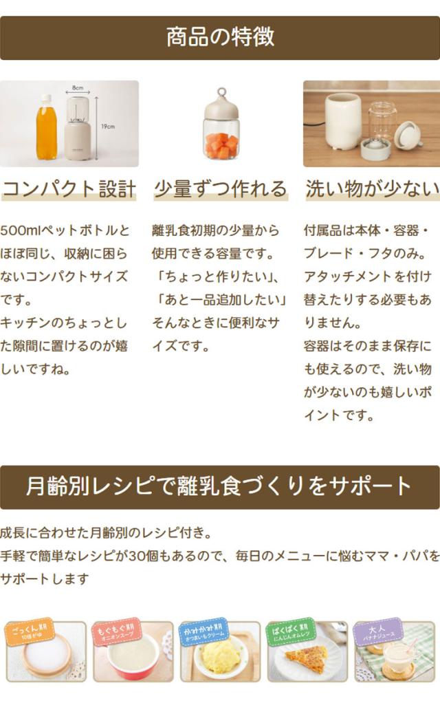 離乳食から料理の下ごしらえ、デザートまで幅広く、長くつかえるブレンダーです。