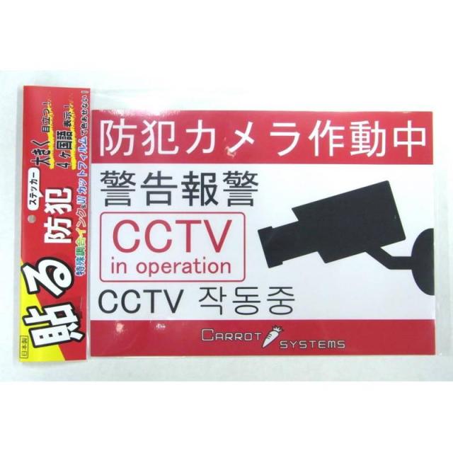 防犯カメラステッカー 防犯シール 防犯カメラ作動中 大きい B5サイズ 10枚組 4か国語 防犯 警告 威嚇 抑止