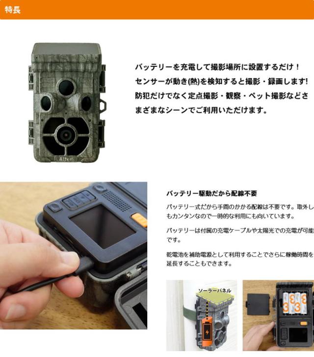 トレイルカメラ 防犯センサーカメラ 配線不要 防水 充電 ソーラー電池式 タイムラプス 監視 定点撮影