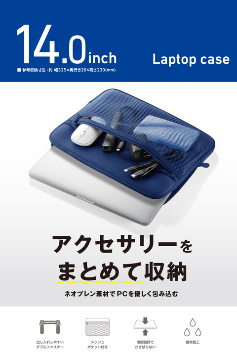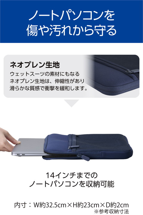 エレコム PC用 インナーバッグ 14.0インチ ファスナーポケット ノートパソコン ネオプレン ネイビー ┃BM-IBPTNP14NV
