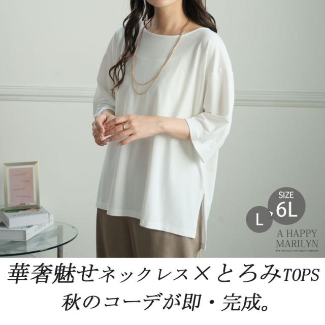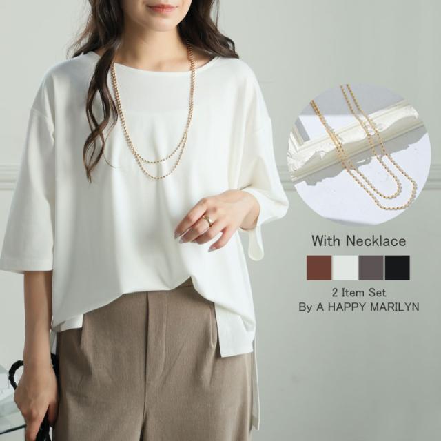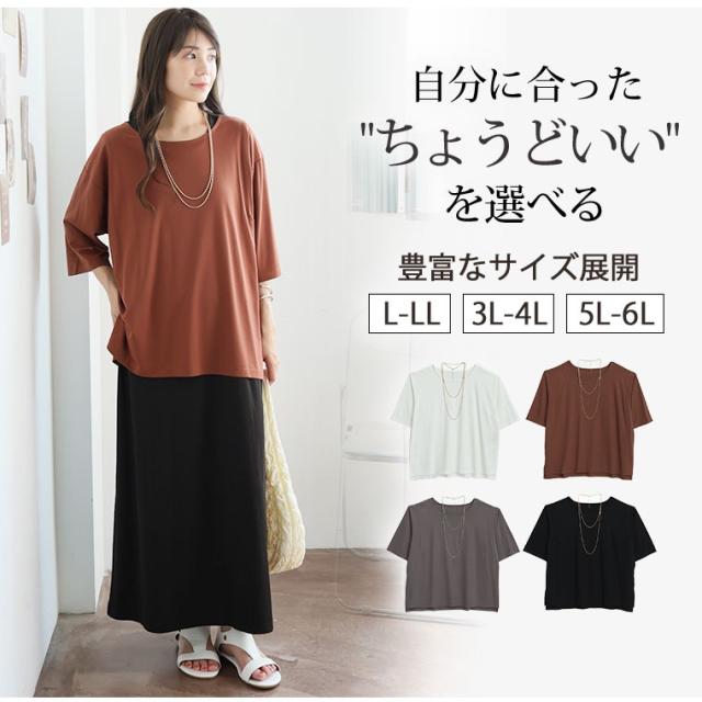 新作 大きいサイズ レディース トップス | 大きいサイズの企画者が考えました! ネックレス付き 抜け感 シンプル プルオーバー [473406] LL 3L 4L 5L 6L