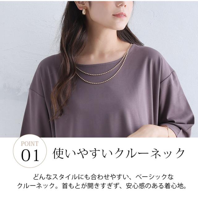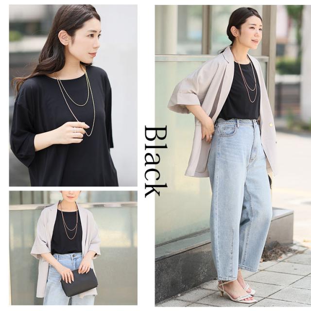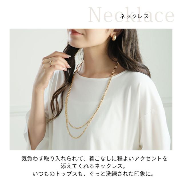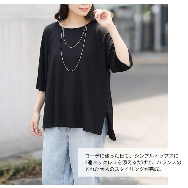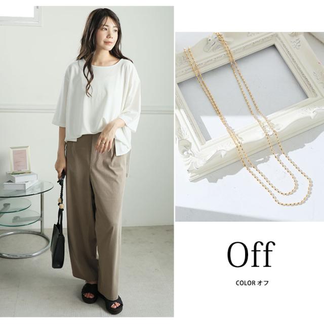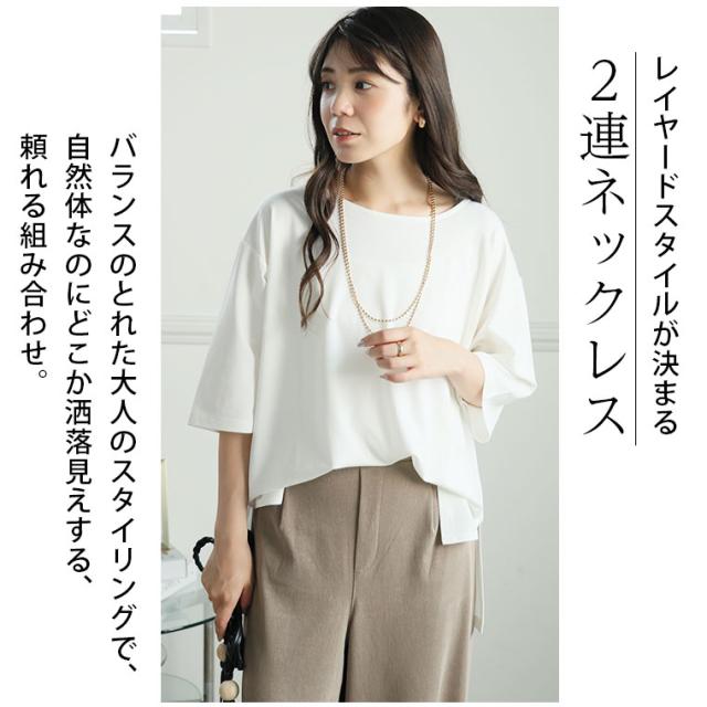 シンプルトップスに2連ネックレスを添えるだけで、バランスのとれた大人のスタイリング体型別コメント