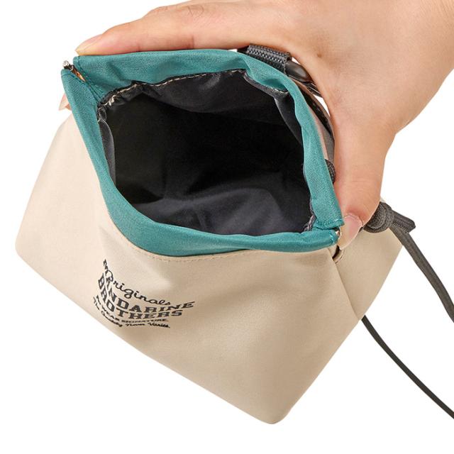 シーンに合わせて使い分けられるショルダーストラップとカラビナ付きで、ショルダーとしてはもちろん鞄などに取り付けも可能です。