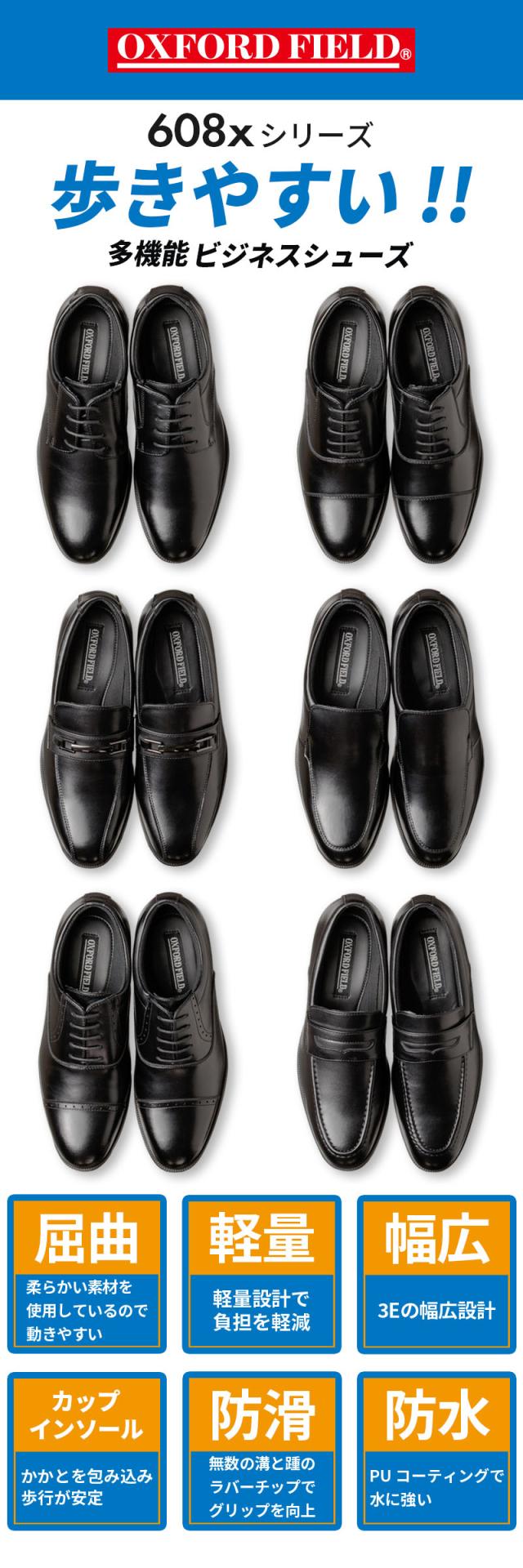 ビジネスシューズ メンズ 歩きやすい 走れる 疲れにくい 軽量 防滑 3E 紳士靴 革靴 プレーントゥ ストレートチップ ビット ローファー ヴァンプ メダリオン ブラック 黒 全6種類 24.5cm 25cm 25.5cm 26cm 26.5cm 27cm 28cm OXFORD FIELD 6081 6082 6083 6084 6085 6086