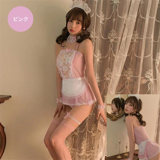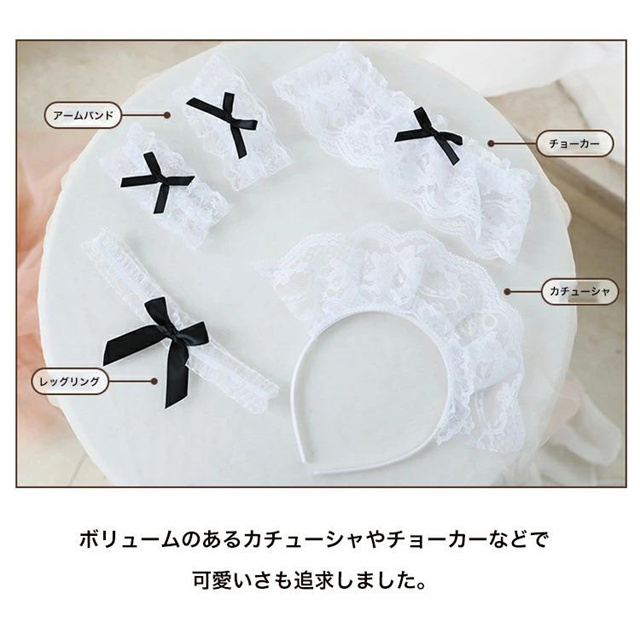 レースとフリルで超セクシーな魅力たっぷりのメイド風コスチュームです。