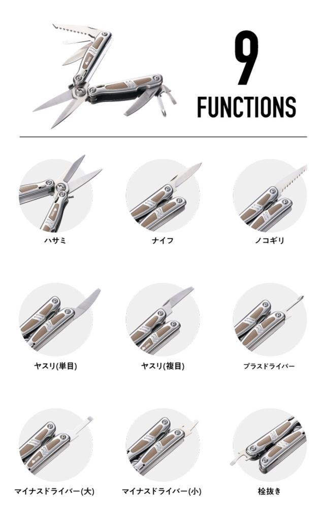片手で使いやすいスプリングアクション搭載!9種類のマルチ機能ツール。