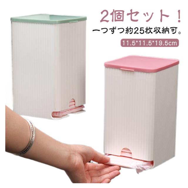 | 一つずつ約25枚収納可。 サニタリー用品をトイレにストックできる収納ケース2個セット! 下のスリットから1枚ずつ取り出せます。 ハンカチやポケットティッシュなどの小物収納にも。 壁掛けタイプなので、場所を取らず、省スペース。 | |