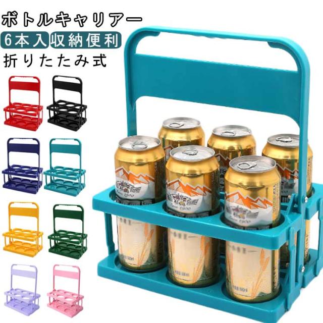 ボトルキャリー 6本収納 ドリンクボトルケース キャリーケース ボトルラック 折りたたみ式 ビール瓶 ワインボトル 手提げ 持ち運び ボトルケージ パーティー ドリンクラック コンパクト 収納便利 アウトドア ドリンクホルダー