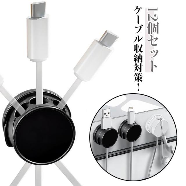 12個セット ケーブルホルダー ケーブルクリップ マグネット 開閉式 コードクリップ 配線止め 貼り付け 360°回転 伸び縮み自在 強力粘着 USB配線収納 机 デスク 配線整理 デスク整理 パソコン配線 調整可能 コードホルダー