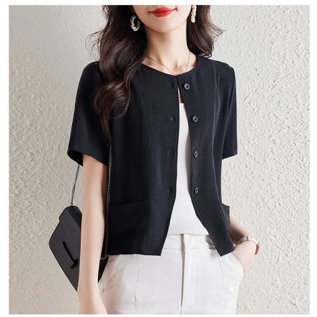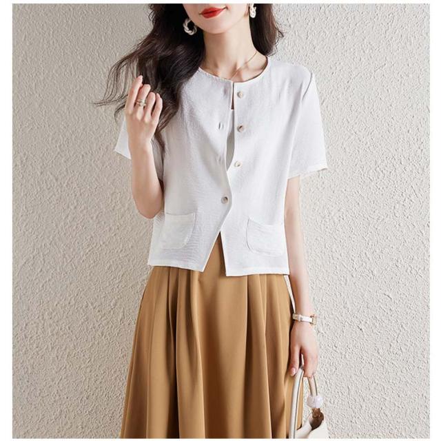 テーラードジャケット 半袖 カーディガン レディース ノーカラーライトジャケット ライトアウター 春夏 半袖ジャケット 大人 女性 きれいめ 羽織り 薄手 日焼け防止 冷房対策トップス 大きいサイズ 通勤 シンプル お洒落 送料無料