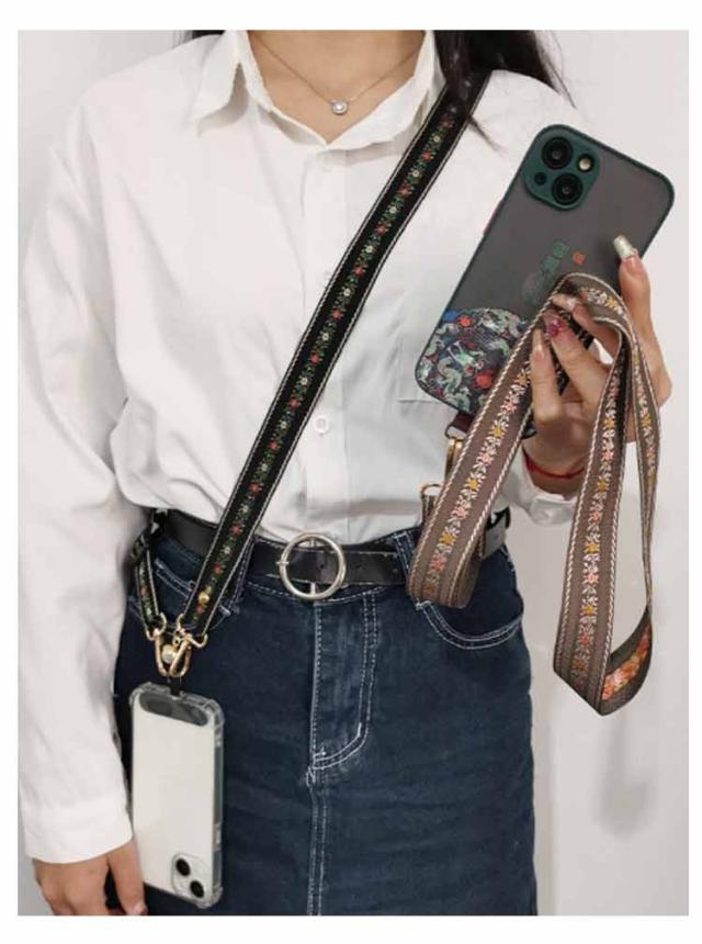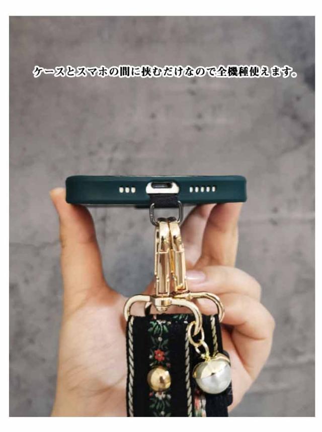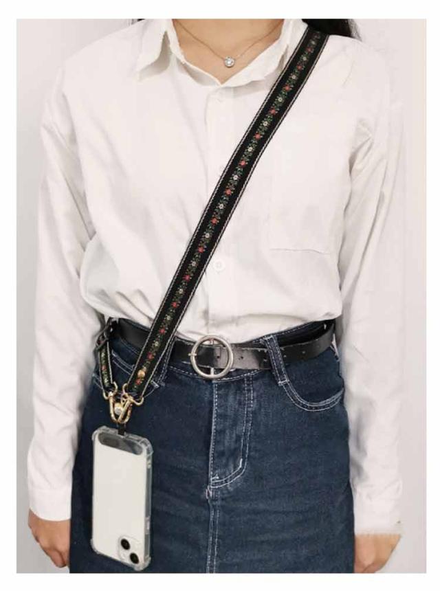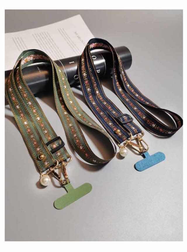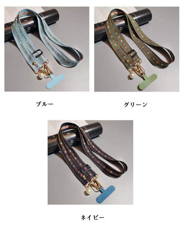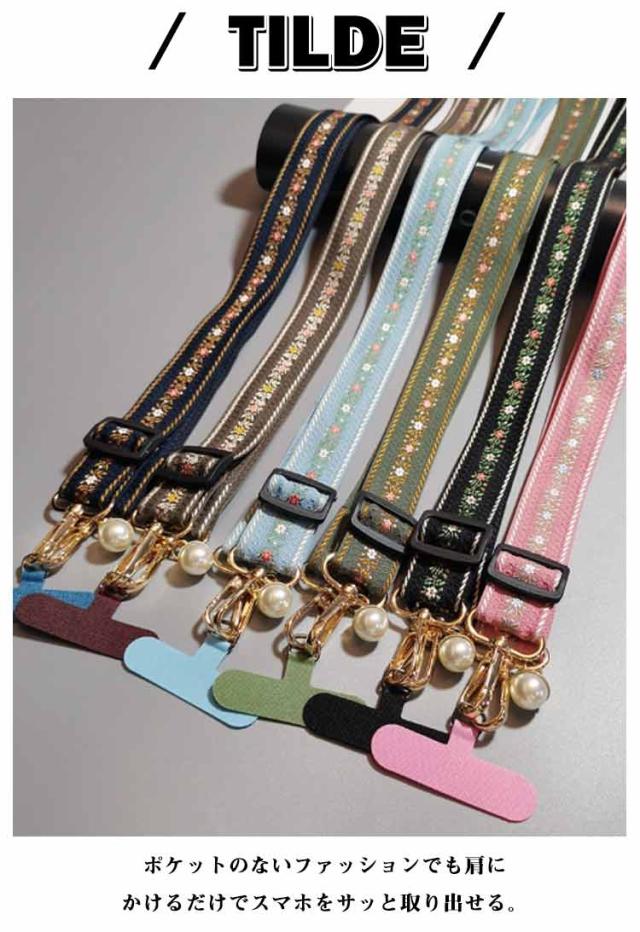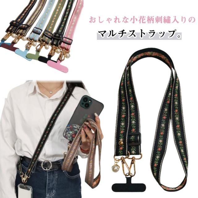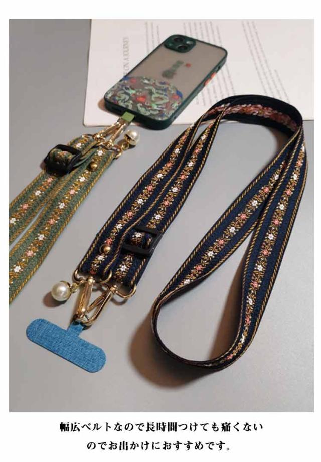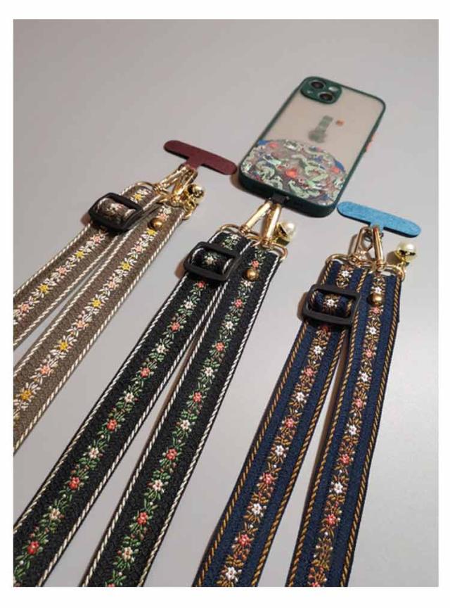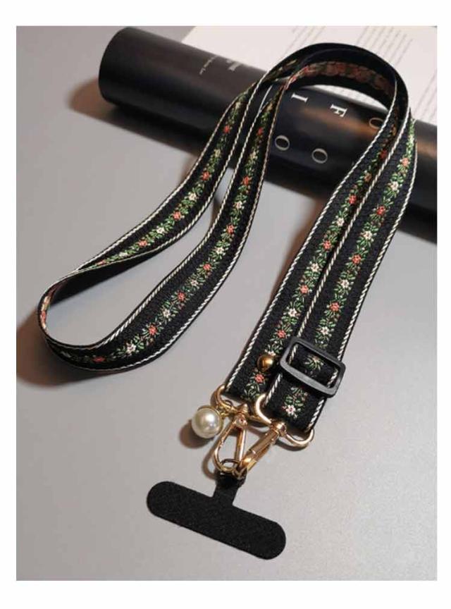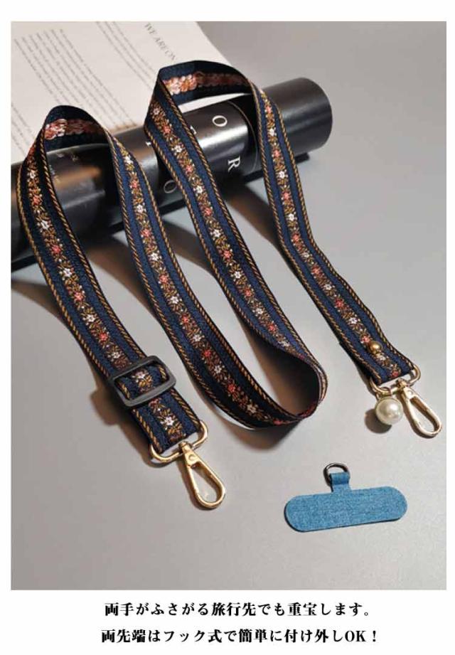 スマホショルダー ストラップ 太め 花柄 刺繍 大人 かわいい ショルダーストラップ 幅広 バッグ用 付け替え ショルダーベルト スマホショルダーストラップ 単品 はさむ 首掛け 斜めがけ 肩掛け 紐 iphone android 落下防止 【送無】