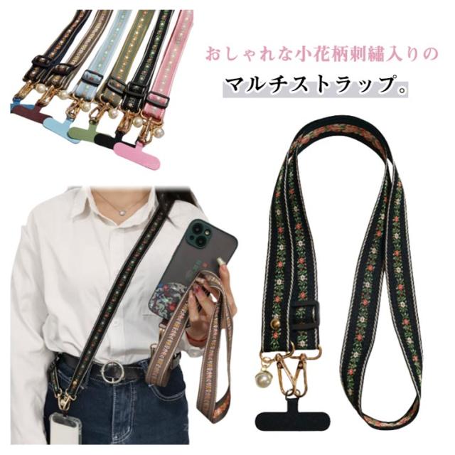 | おしゃれな小花柄刺?入りのマルチストラップ。 ポケットのないファッションでも肩にかけるだけでスマホをサッと取り出せる。 両手がふさがる旅行先でも重宝します。 両先端はフック式で簡単に付け外しOK! 幅広ベルトなので長時間つけても痛くないのでお出かけにおすすめです。 スマホだけでなくバッグなどマルチウェイで使えます。 ケースとスマホの間に挟むだけなので全機種使えます。 | |
