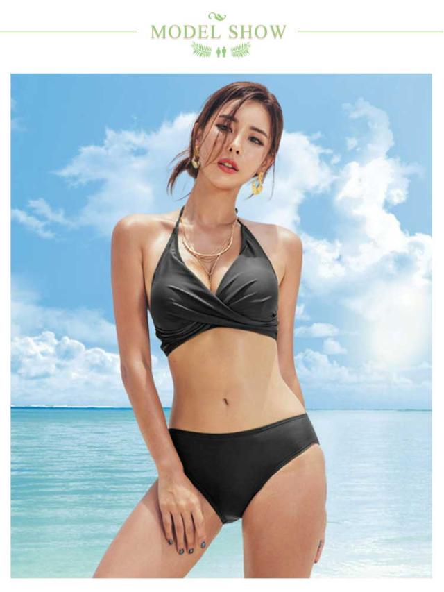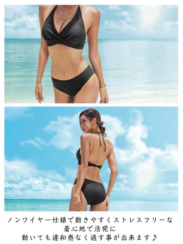 水着 レディース ビキニ 上下セット ホルターネック 胸パッド 盛れる ワイヤーなし セパレート ビーチ 水着 上下 無地 ノンワイヤー パッド付き 小胸 バスト 盛れる 肩紐 アジャスター調節 海 プール ビーチ リゾート 旅行 夏 温泉 こなれ感