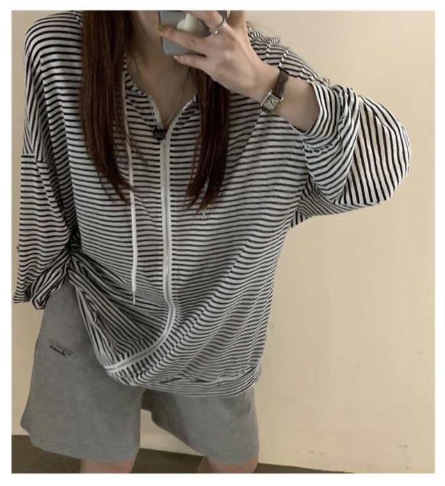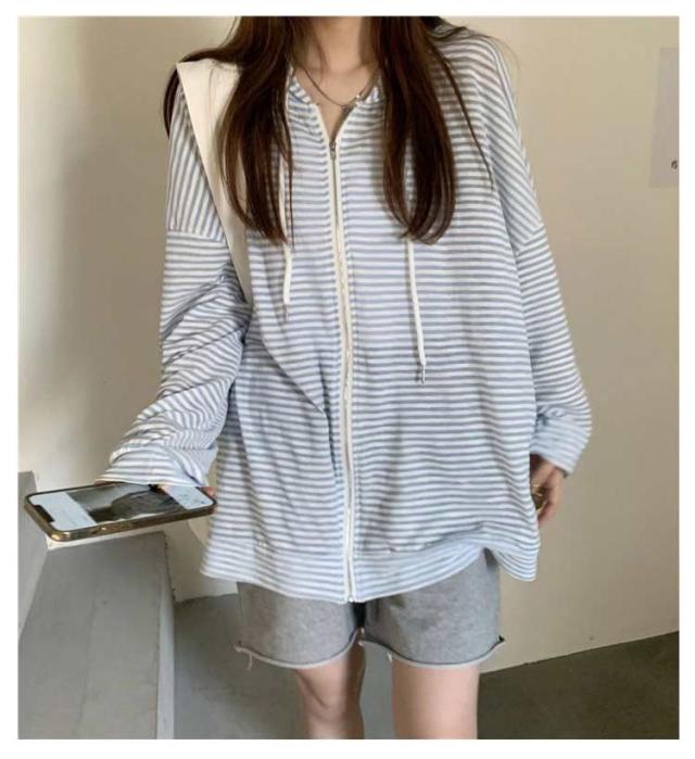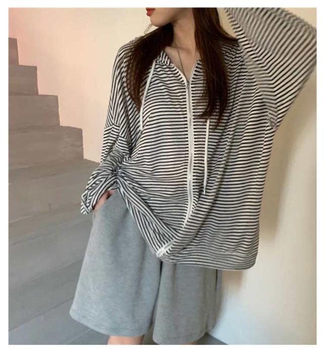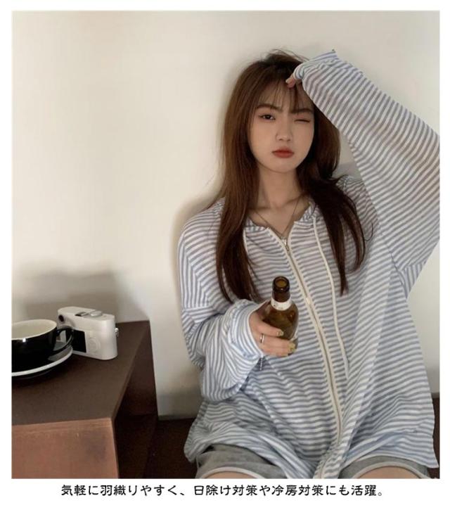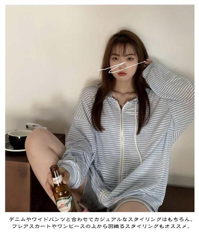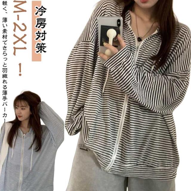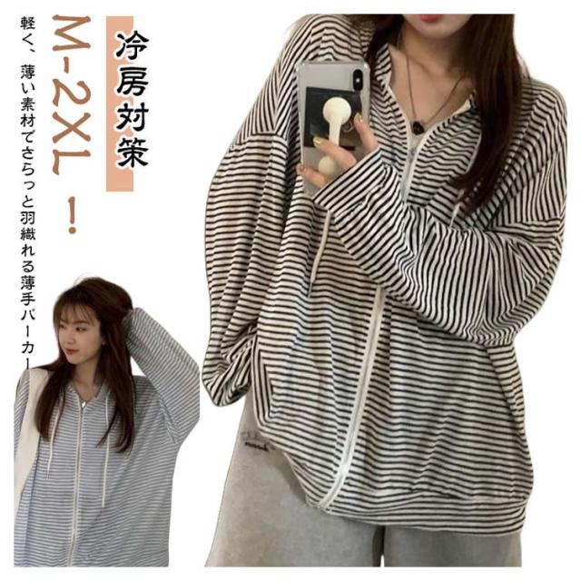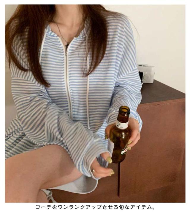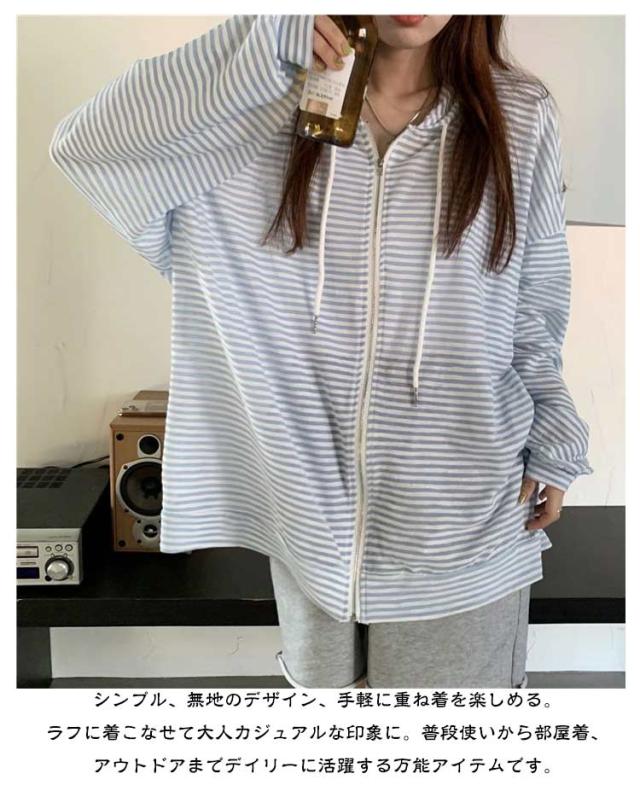 パーカー レディース トップス 春夏 スウェット ボーダー 洗える 上着 羽織り フード付 長袖 カジュアル 春 夏 ライトアウター ジップアップ パーカ 日焼け防止 日焼け対策 冷房対策 きれいめ 大人 シンプル 無地 柔らかい 20代 30代 40代 50代 オフィス おしゃれ