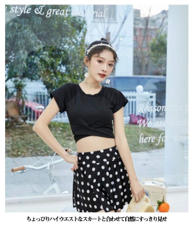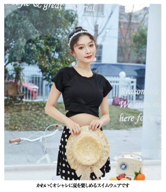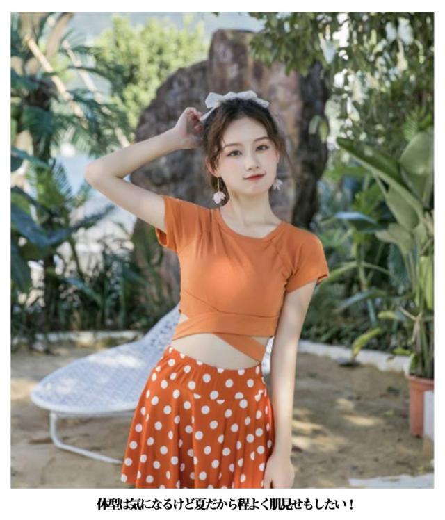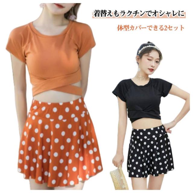水着 レディース ビキニ 体型カバー 半袖 トップス スカート 2点セット セパレート 可愛い 大人 洋服みたい フレアスカート 盛れる ウエスト お尻 太もも カバーアップ 20代 30代 40代 ママ水着 送料無料