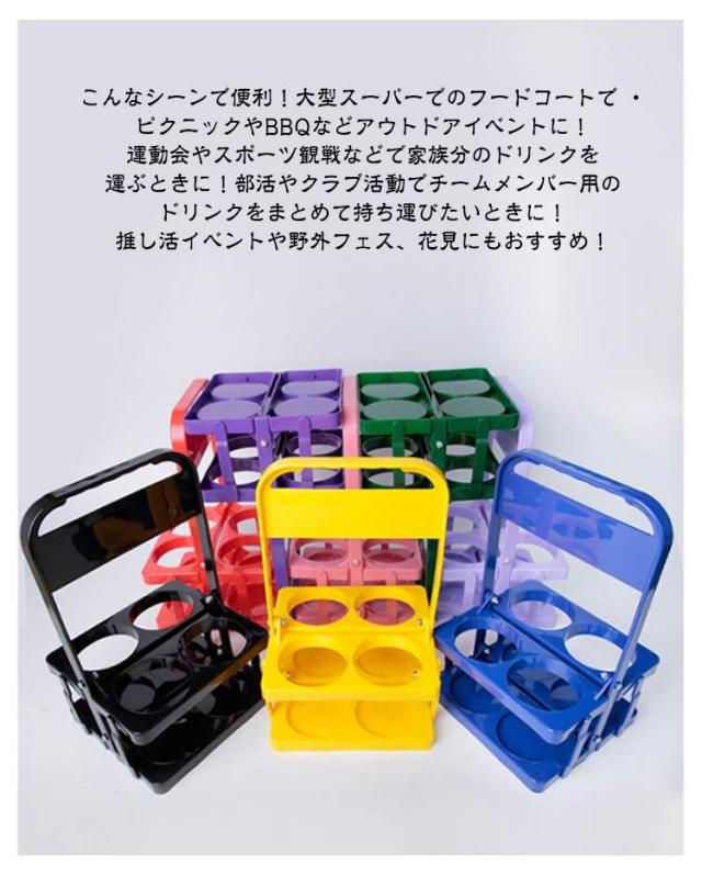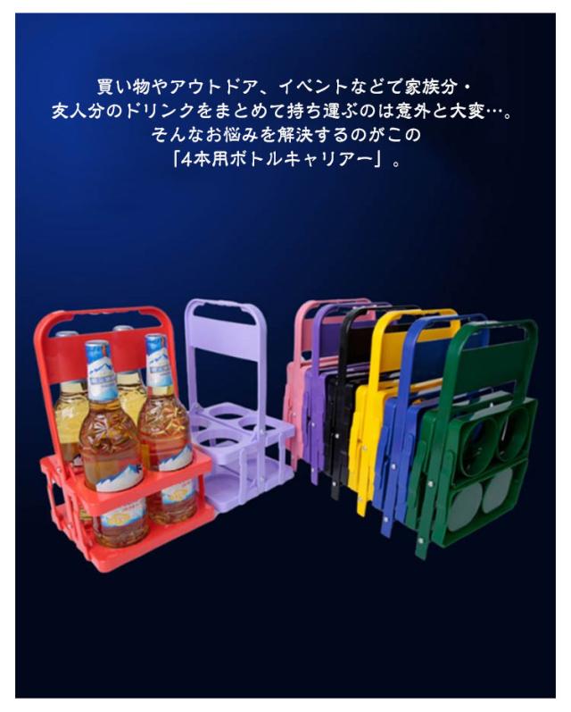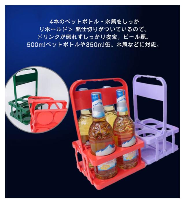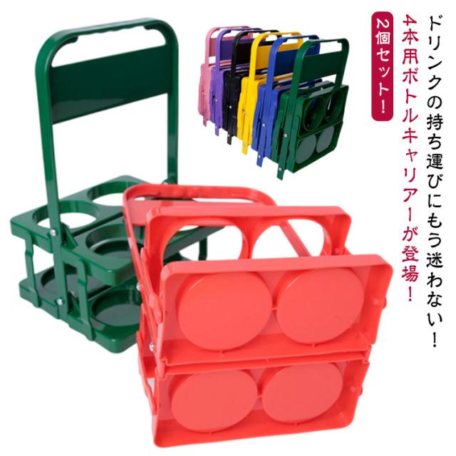 ボトルキャリアー 4本用 ドリンクホルダー 2個セット ペットボトルホルダー ドリンクバスケット 折りたたみ 軽量 コンパクト 持ち運び 取っ手付き ドリンク ビール 瓶 缶 ペットボトル ウォーターボトル スポーツ観戦 レジャー アウトドア 運動会 部活 ピクニック BBQ