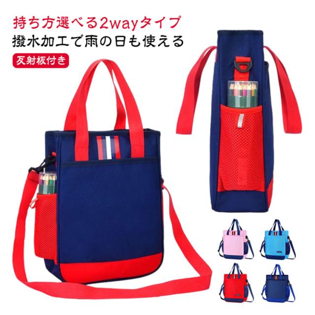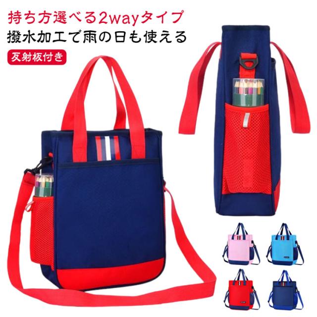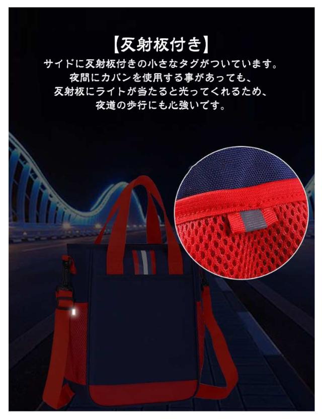 | 【持ち方選べる2wayタイプ】取り外し可能なストラップがついているため、ハンドバッグとショルダーバッグ、どちらでも使用する事ができる2wayタイプのバッグです。持ち方をすぐに変更できるので、どんなシーンにも活躍します。 【荷物が安定する縦型】しっかりした素材で縦に深いバッグです。荷物の中身を固定しやすく、中に入れた物が偏って出しにくかったり探す手間が少なくなります。メインポケットにはファスナーがついていて、中身が落ちる心配もいりません。 【使いやすいポケット付き】前面にポケット、サイドにはメッシュ素材のポケットが2つついています。よく使う小物を入れたり、サイドには飲み物や折りたたみ傘を入れたりと、小分けに収納できて取り出しやすいです! 【反射板付き】サイドに反射板付きの小さなタグがついています。夜間にカバンを使用する事があっても、反射板にライトが当たると光ってくれるため、夜道の歩行にも心強いです。 【コンパクトなのに大容量】メインポケットはA4サイズの大きさが入り、教科書や筆箱、水筒、お財布、着替えなど、持ち運びたい物がしっかり収納できます。 【撥水加工で雨の日も使える】撥水加工のナイロン生地を使用しているため、水に強く耐久性もあり丈夫です。万が一雨に濡れてしまっても中身が濡れてしまう心配はいりません。 【軽量で持ち運び楽ちん】カバンを持ち運ぶ際、お子様の負担にならず楽に使用する事ができます。長時間使用していても、疲れにくいです。 【色んなシーンで活躍】学校でのサブバッグとして使用したり、塾や習い事のレッスンバッグ、プライベートで使用したりと色んなシーンで活躍する便利なバッグです。 【プレゼントにいかがでしょうか?】程よい大きさでシンプルなデザインのため、お子様だけでなく大人の方も使用できます。お誕生日や入学祝い、クリスマスなどお祝い事のプレゼントにいかがでしょうか | |