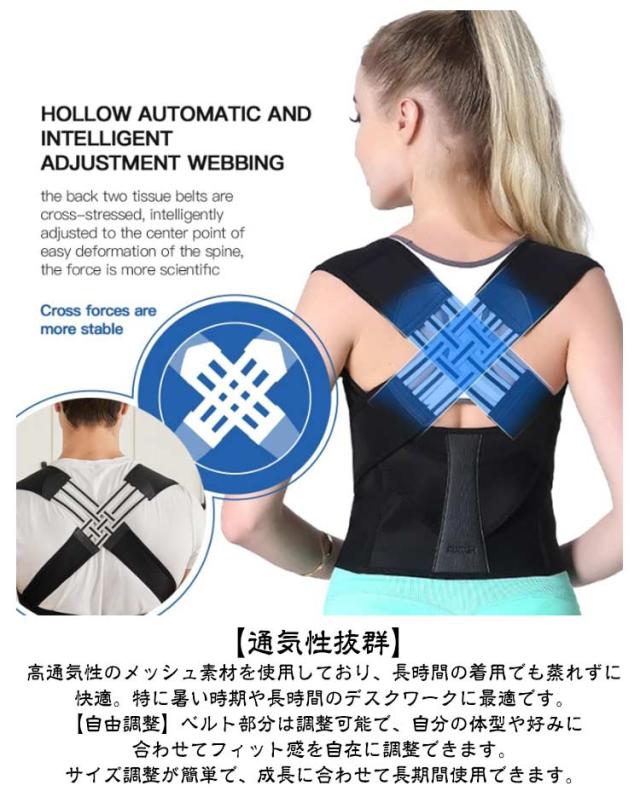 | 日常生活や長時間のデスクワーク、スマートフォンの使用で姿勢が気になる方へ。猫背矯正ベルトは、自然で快適な姿勢をサポートし、背筋を美しく整える理想的なアイテムです。 薄手で目立たないデザインなので、夏場でも快適に使用でき、どんな服装にも合わせやすいです。 子供から大人まで幅広いサイズが揃っており、家族全員での使用が可能です。 【猫背矯正 & 姿勢改善】背筋を自然に伸ばし、肩の位置を正しく保つことで猫背や巻き肩を効果的に矯正します。姿勢を改善することで、体のバランスが整い、健康的なライフスタイルをサポートします。 【通気性抜群】高通気性のメッシュ素材を使用しており、長時間の着用でも蒸れずに快適。特に暑い時期や長時間のデスクワークに最適です。 【自由調整】ベルト部分は調整可能で、自分の体型や好みに合わせてフィット感を自在に調整できます。サイズ調整が簡単で、成長に合わせて長期間使用できます。 【脱着簡単】シンプルな設計で、誰でも簡単に着脱できます。初心者でも安心して使用でき、忙しい日常でも手間なく利用可能です。 【男女兼用・大きいサイズも対応】 男性、女性、子供用のサイズがあり、家族全員で使える設計です。大きいサイズもご用意しており、幅広い体型に対応しています。 【脇の痛みを軽減】脇に負担がかからないよう配慮されたデザインで、長時間の着用でも脇が痛くなりにくいです。 【バストアップ効果】 正しい姿勢をサポートすることで、自然なバストアップ効果も期待できます。 | |