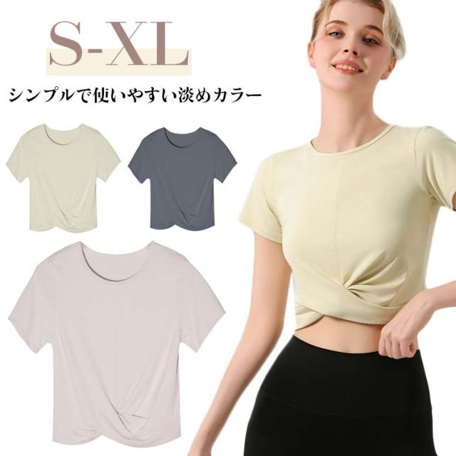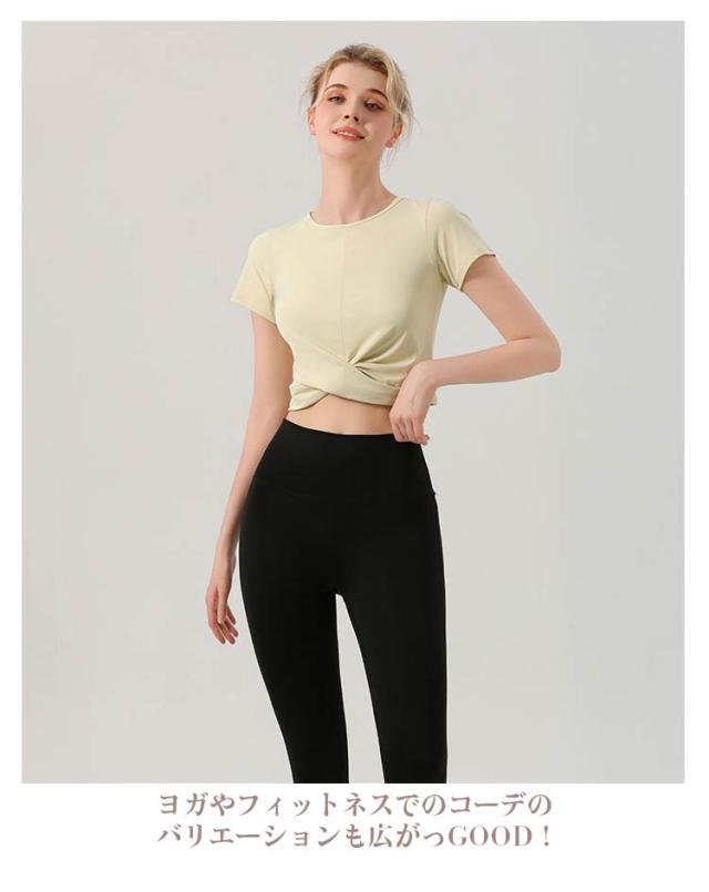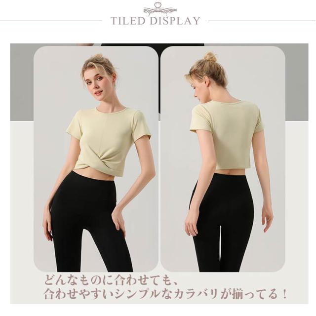 ヨガウェア レディース 半袖 トップス 薄手 クロップド丈 クロスデザイン セットインスリーブ シンプル 無地 おしゃれ かわいい 韓国 へそ出し ウエスト 細見え スポーツ フィットネス ホットヨガ ピラティス ストレッチ ダンス エアロビクス 運動着 吸水 速乾