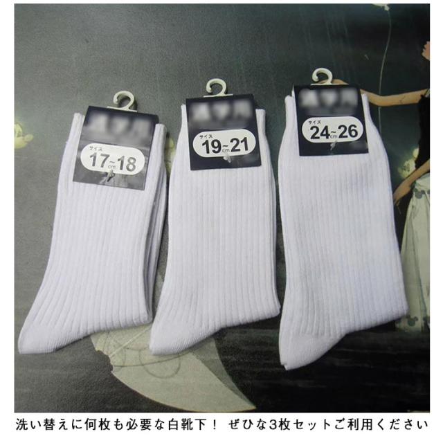| 洗い替えにもぴったり!白ソックス3枚セットです! 幼稚園から小中高まで幅広く、サイズ取り揃えております。 洗い替えに何枚も必要な白靴下! ぜひな3枚セットご利用ください | |