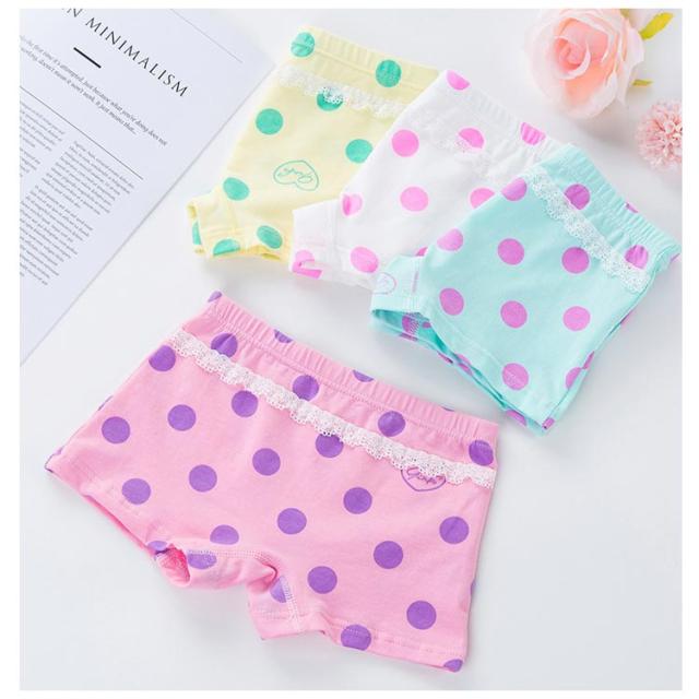 4枚セット ボクサーパンツ 女の子 下着 ショーツ レース ドット柄 かわいい おしゃれ キッズパンツ 子供用 保育園 パンツ ジュニア ガールズ 柔らかい 肌に優しい 子供下着 柄入り 下着 ボクサー 可愛いパンツ 綿 女児 ジュニア