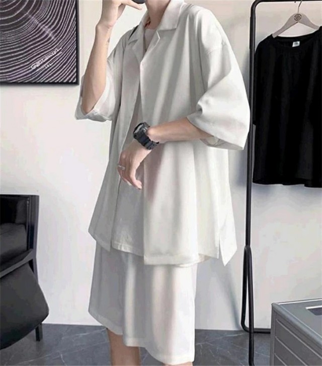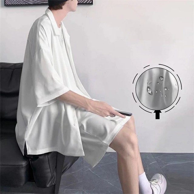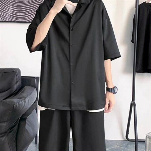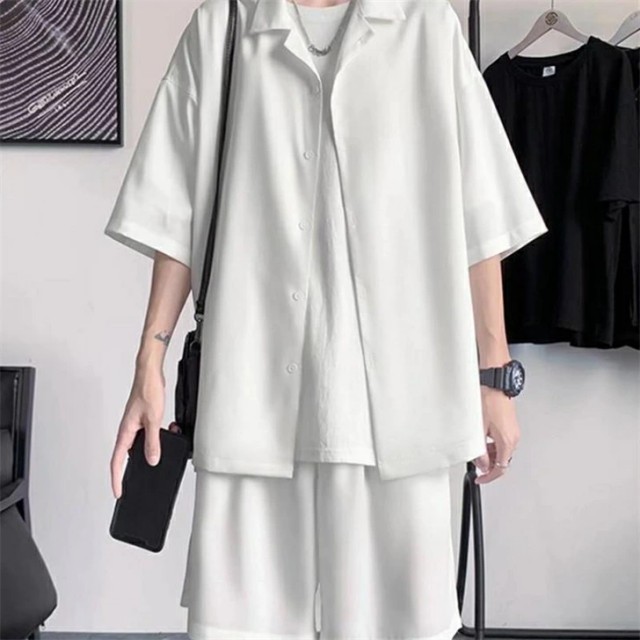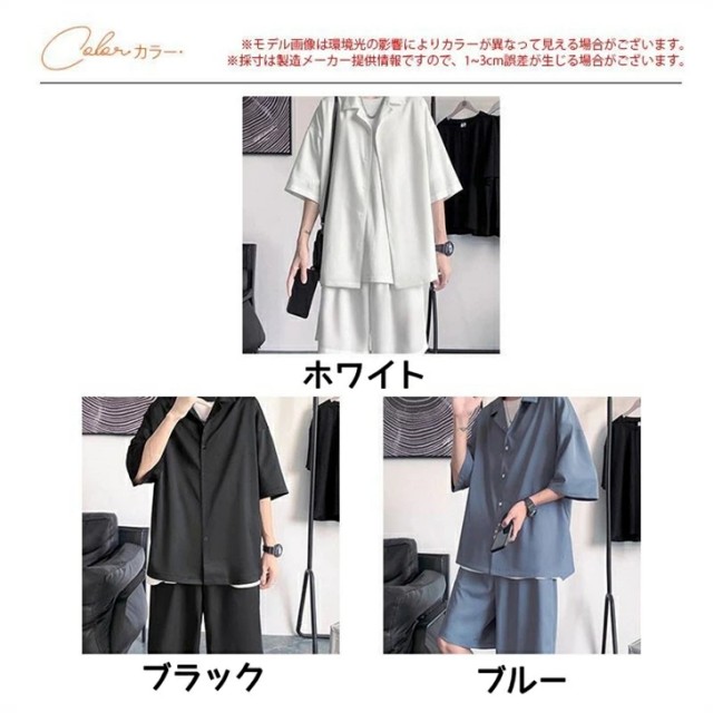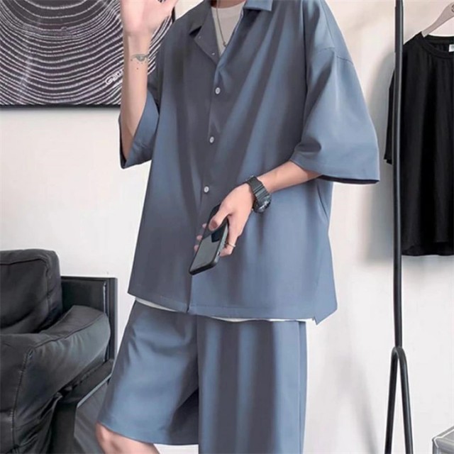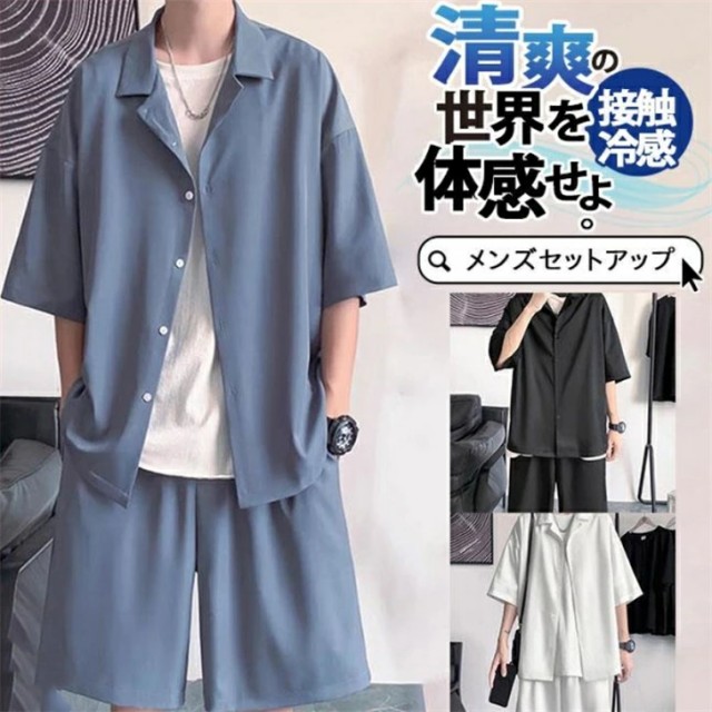 セットアップ メンズ 夏 半袖 アイスシルク 接触冷感 ジャージ 上下セット シャツ ショートパンツ カジュアル ゆったり 薄手