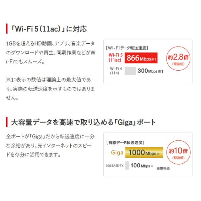 Wi-Fi 5(11ac)対応Wi-Fiルーター 866+300Mbps AirStation