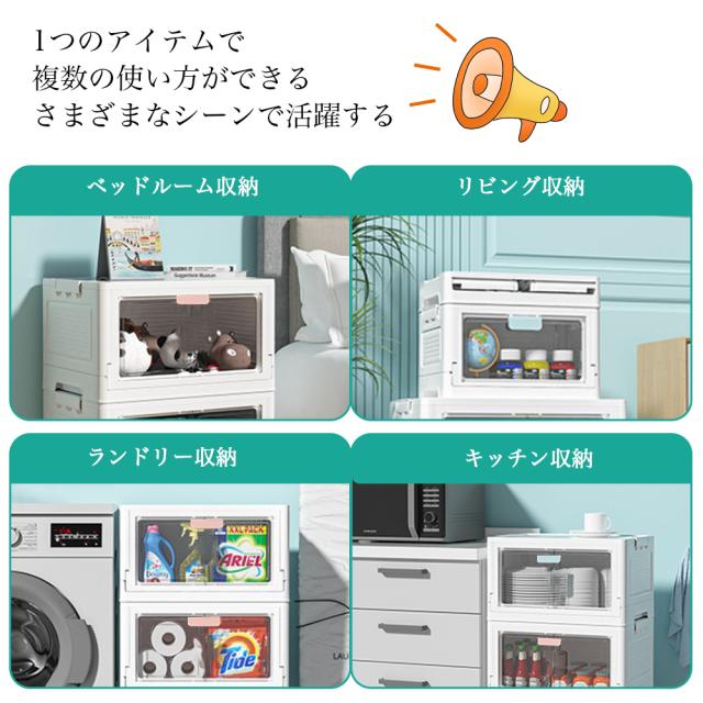 【折り畳み?上に蓋/側面扉付き】収納箱界の大革新!使わない時に折りたたんで収納できます。スペースを取りません。上にふた付き、物を入れやすい。ボックスを積み重ねる状態にも楽に物を取り出して、伝統的な収納ボックスに比べてもっと便利で、機能性が向上します。