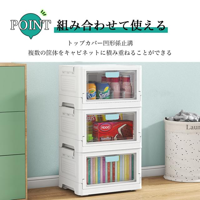 収納ケース 折りたたみ 前開き キャスター付き 扉付き 収納ボックス 積み重ね コンテナボックス プラスチック おしゃれ フタ付 中身が見える おもちゃ 衣装ケース 小物 衣替え 整理