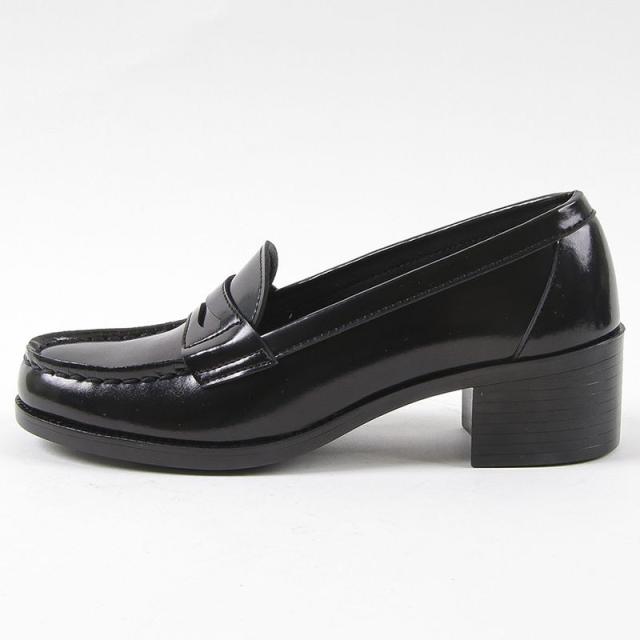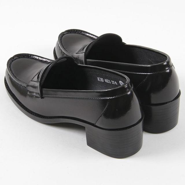 特徴:お洒落な幅広ヒールアップ人工皮革ローファー