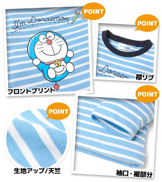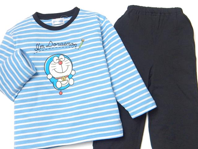 【送料無料】男児 キッズ 天竺 長袖 パジャマ ドラえもん 上下組 本体綿100% キャラクタープリント ボーダー 子供服 男の子 110cm 120cm yg-2820b-bl【メール便対応】