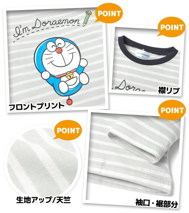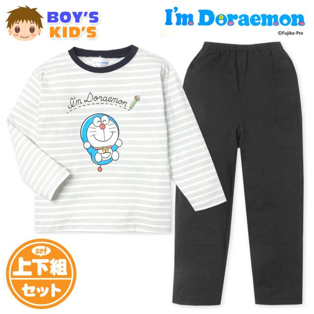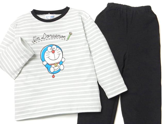 【送料無料】男児 キッズ 天竺 長袖 パジャマ ドラえもん 上下組 本体綿100% キャラクタープリント ボーダー 子供服 男の子 110cm 120cm yg-2820a-gy【メール便対応】