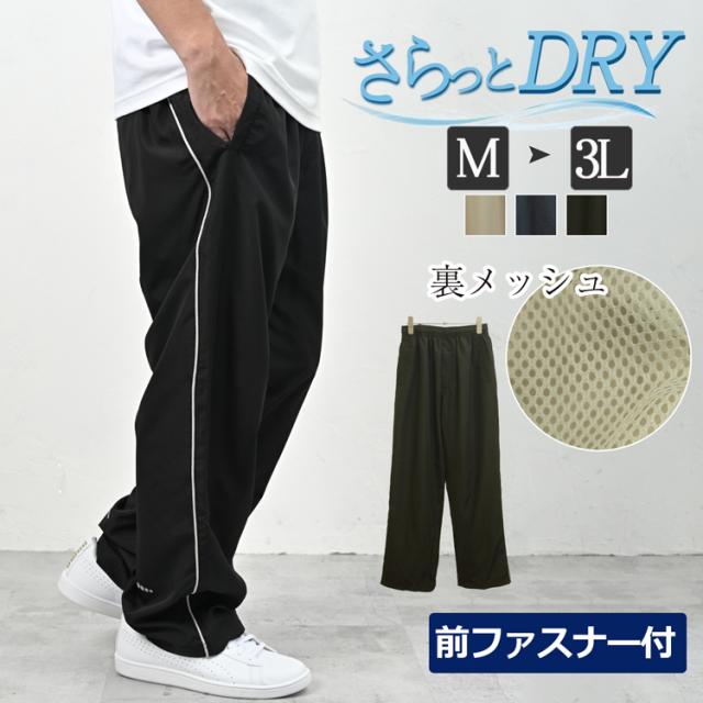 シャカパン メンズ ジャージ 下 夏 サイドライン パンツ 裏メッシュ ナイロンパンツ シャカシャカパンツ 速乾 ウエストゴム 前ファスナー 前開き ロング丈 ポケット付き ズボン 春 秋 スポーツ 黒 紺 M L LL 3L 大きいサイズ ジャージパンツ ジャージ下 大人 涼しい